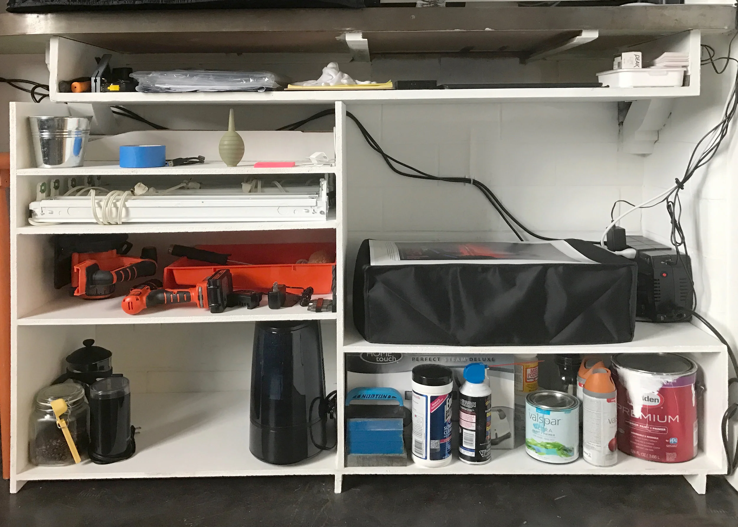 Painting new shelf insert. Ah. The organizer in me is quite happy.